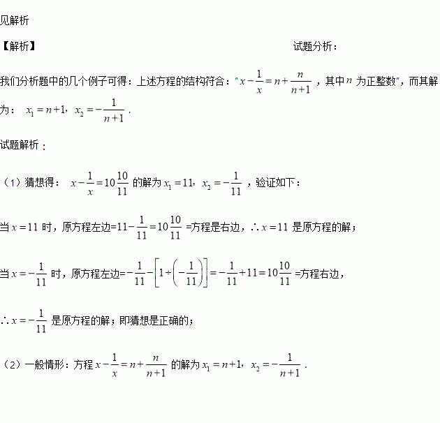 问题:观察上述方程及其解,再猜想出方程: 的解,并进行检验再推广到一般情形.