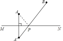 (2):画出点A关于直线MN的对称点A′,连接A′B交MN于点P,连接AP,