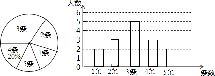 ƽ¾ùÌõÊý=£¨1¡Á2+2¡Á3+3¡Á5+4¡Á3+5¡Á2£©¡Â15=3£¬