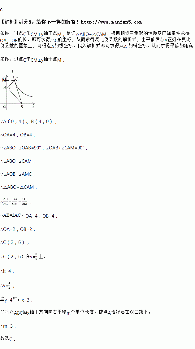 (x>0)的图象经过点C,将△ABC沿x轴的正方向向右平移m个单位长度,使点A恰好落在函数y=