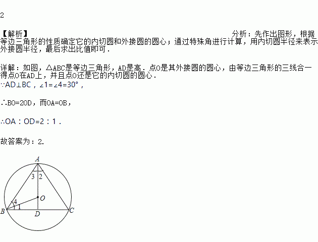 正三角形的外接圆的半径与内切圆半径的比值为_____.