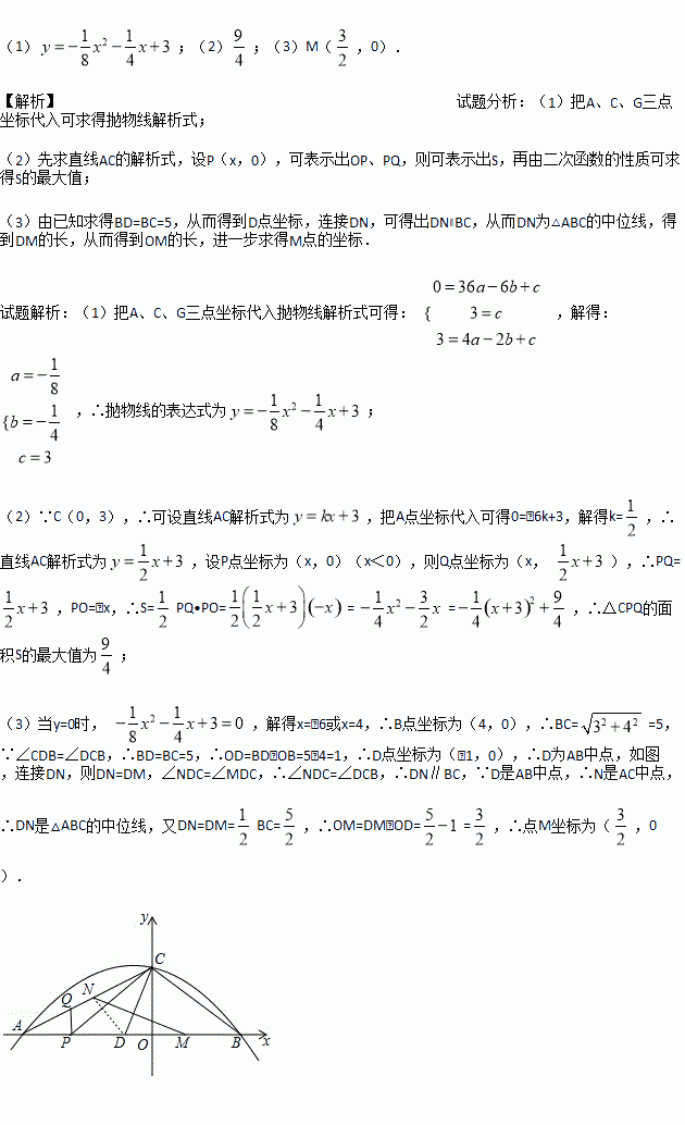 (3)若点B是抛物线与x轴的另一定点,点D、M在线段AB上,点N在线段AC上,∠DCB=∠CDB,CD是MN的垂直平分线,求点M的坐标.