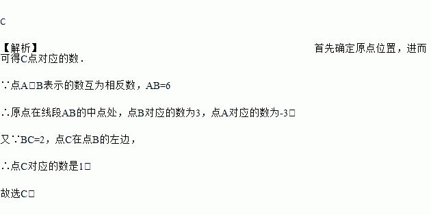 如图,数轴上有三个点A、B、C,若点A、B表示的数互为相反数,则图中点C对应的数是( )