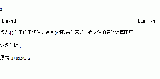 ﹣π)0﹣2tan45°.