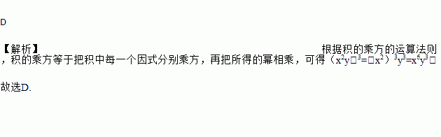 D 【解析】根据积的乘方的运算法则,积的乘方等于把积中每一个因式分别乘方,再把所得的幂相乘,可得(x2y)3=(x2)3y3=x6y3, 故选D.