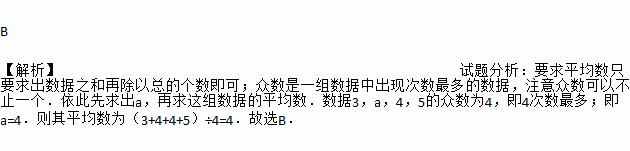 已知一组数据3,a,4,5的众数为4,则这组数据的平均数为( )