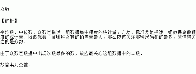 该店经理如果想要了解哪种女鞋的销售量最大,那么他应关注的统计量是_____.