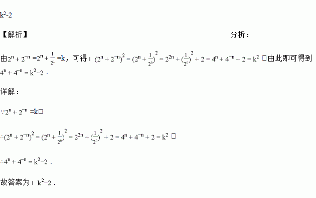已知2n+2-n=k(n为正整数),则4n+4-n=____________.(用含k的代数式表示)