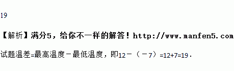 某天温度最高是12℃,最低是﹣7℃,这一天温差是 ________℃.