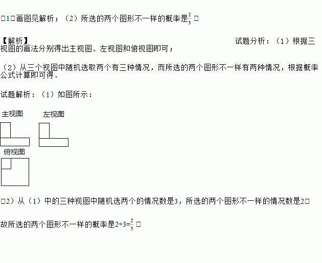 (2)小涵从(1)中的三种视图中随机选两个,求她所选的两个图形不一样的概率.