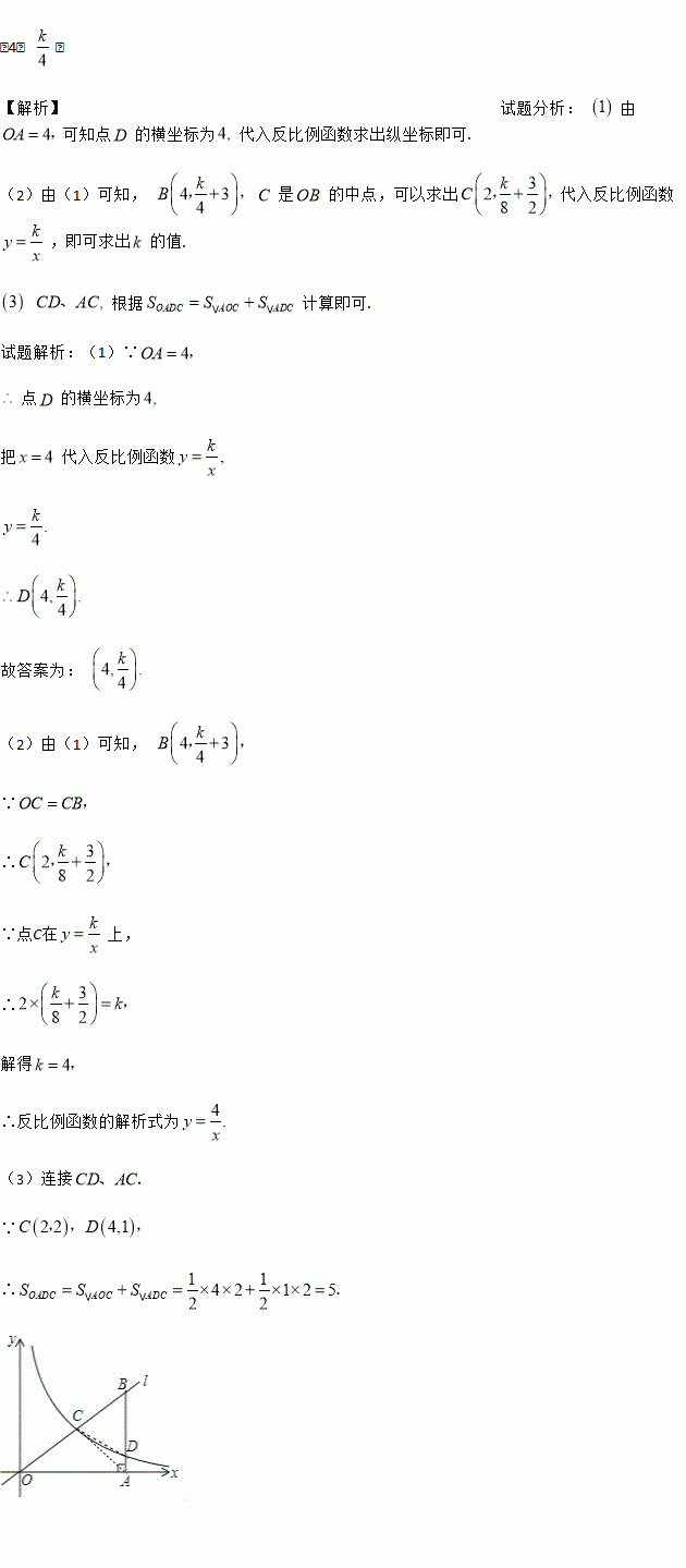 (x>0)的图象交于点C,B是直线l上的点,过点B作BA⊥x轴,垂足为点A,且C是OB中点,已知OA=4,BD=3.