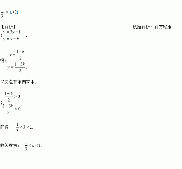 直线y=3x﹣1与直线y=x﹣k的交点在第四象限,k的取值范围是_____.