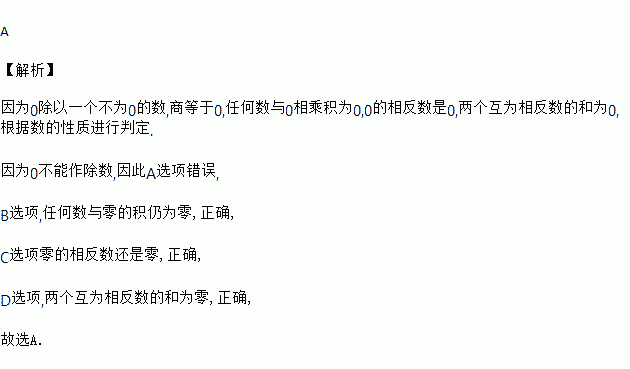 A. 零除以任何数,商是零 B. 任何数与零的积仍为零