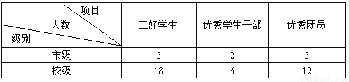 某班学生在颁奖大会上得知该班获得奖励的情况如下表: