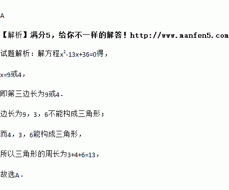 三角形两边长分别为3和6,第三边的长是方程x2﹣13x+36=0的两根,则该三角形的周长为( )