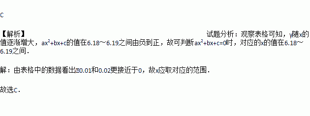 A. ﹣0.01<x<0.02 B. 6.17<x<6.18 C. 6.18<x<6.19 D. 6.19<x<6.20