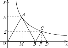 分析:根据等边三角形的性质得出AN,AM,ZC,CF的长,再利用反比例函数的性质得出即可.