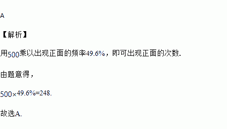 在抛掷一枚硬币的实验中,某一组做了500次实验,其出现正面的频率是49.6%,可以推知出现正面的次数是( )