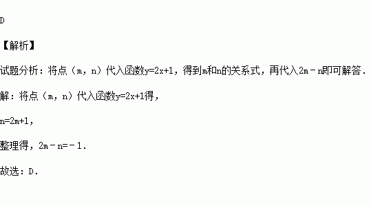(2012•苏州)若点(m,n)在函数y=2x+1的图象上,则2m﹣n的值是( )