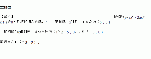 如果抛物线y=ax2﹣2ax+c与x轴的一个交点为(5,0),那么与x轴的另一个交点的坐标是_____.