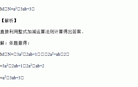 已知M=3a2﹣2ab+1,N=2a2+ab﹣2,求M﹣N.