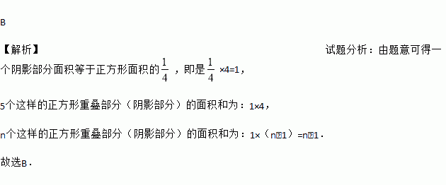 如图,将n个边长都为2的正方形按如图所示摆放,点A1,A2,…An分别是正方形的中心,则这n个正方形重叠部分的面积之和是( )