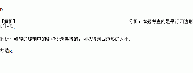 小敏不慎将一块平行四边形玻璃打碎成如图的四块,为了能在商店配到一块与原来相同的平行四边形玻璃,他带了两块碎玻璃,其编号应该是( )