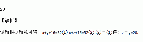 若使用竖式做有理数加法运算的过程如图所示,则代数式z-y的值为_________.