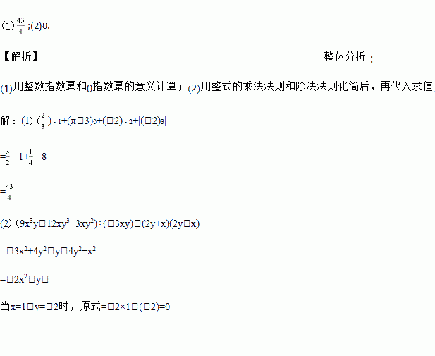 (2)(9x3y﹣12xy3+3xy2)÷(﹣3xy)﹣(2y+x)(2y﹣x),其中x=1,y=﹣2.