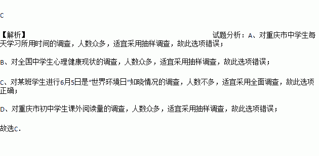 C. 对某班学生进行6月5日是“世界环境日”知晓情况的调查