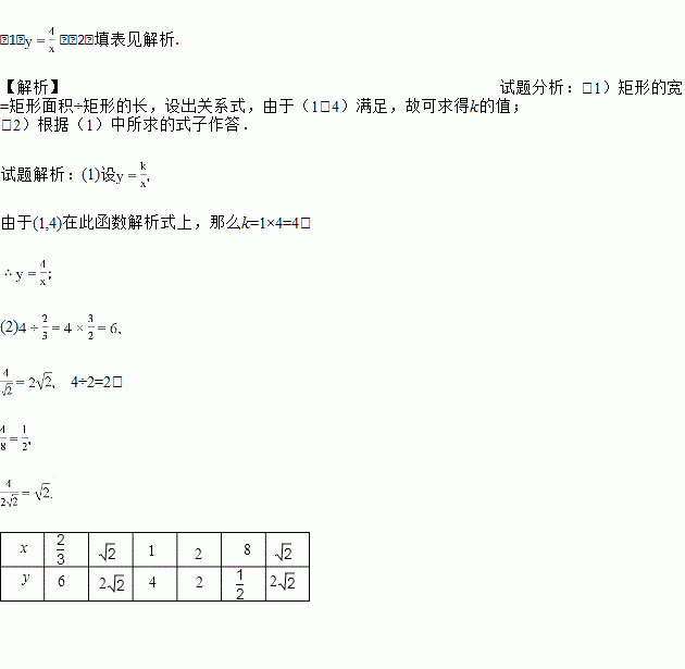 若矩形的长为x,宽为y,面积保持不变,下表给出了x与y的一些值求矩形面积.