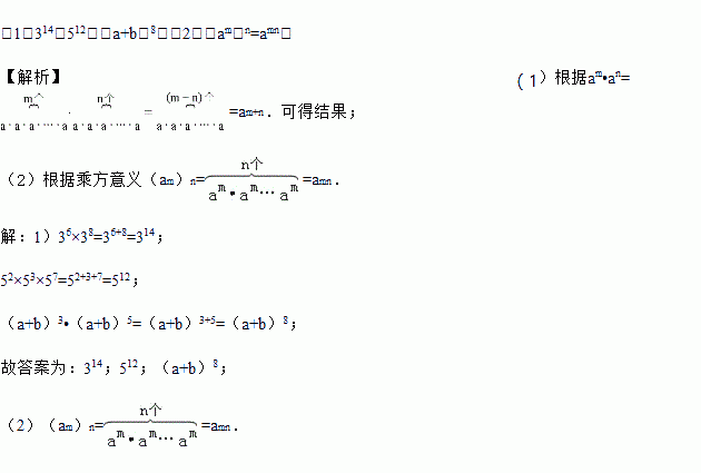 (2)仿照以上的分析过程,用的幂的形式表示(am)n的结果(提示:将am看成一个整体).