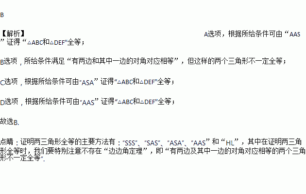 在△ABC和△DEF中,下列各组条件中,不能判定两个三角形全等的是( )