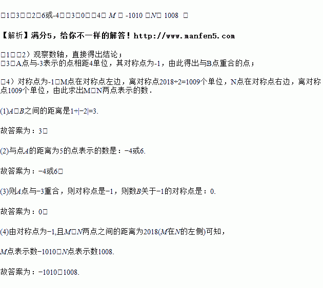 (4)若数轴上 M、N 两点之间的距离为 2018(M 在 N 的左侧),且 M、N 两点经过(3)中折 叠 后 互 相 重 合 , 则 M 、 N 两 点 表 示 的 数 分 别 是 : M : ;N: .
