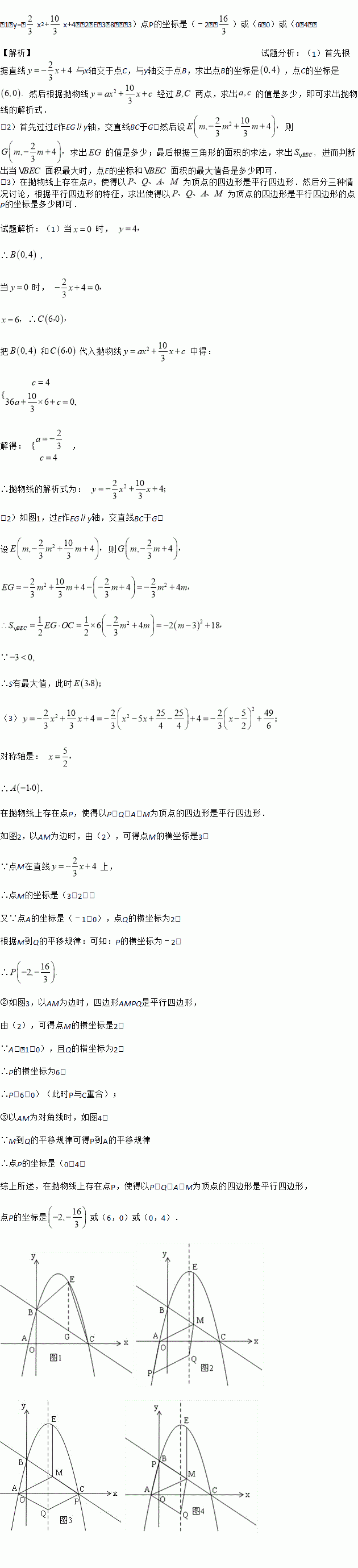 (3)在(2)的结论下,过点E作y轴的平行线交直线BC于点M,连接AM,点Q是抛物线对称轴上的动点,在抛物线上是否存在点P,使得以P、Q、A、M为顶点的四边形是平行四边形?如果存在,请直接写出点P的坐标;如果不存在,请说明理由.