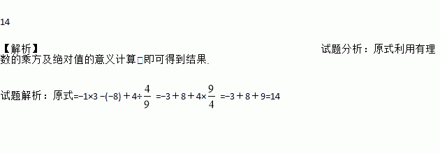 计算:(?1)2013×| ?3 |?(?2)3+4÷(?)2