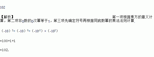 计算(-10)2+(-10)0+(-10-2)×(-102)的结果是_________.