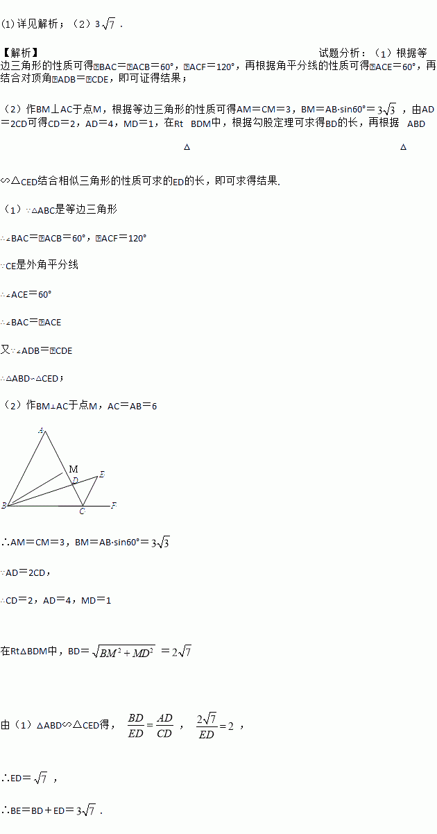 如图,△ABC是等边三角形,CE是∠ACB的外角平分线,点D在AC上,连接BD并延长交CE于点E.