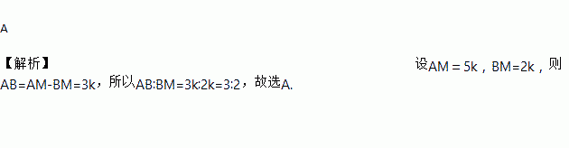 已知M是线段AB延长线上一点,且AM:BM=5:2则AB:BM为( )