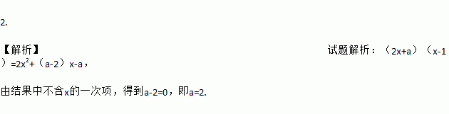 若(2x+a)(x﹣1)的结果中不含x的一次项,则a=_____.