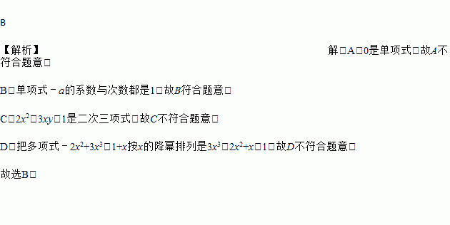 D. 把多项式﹣2x2+3x3﹣1+x按x的降幂排列是3x3﹣2x2+x﹣1