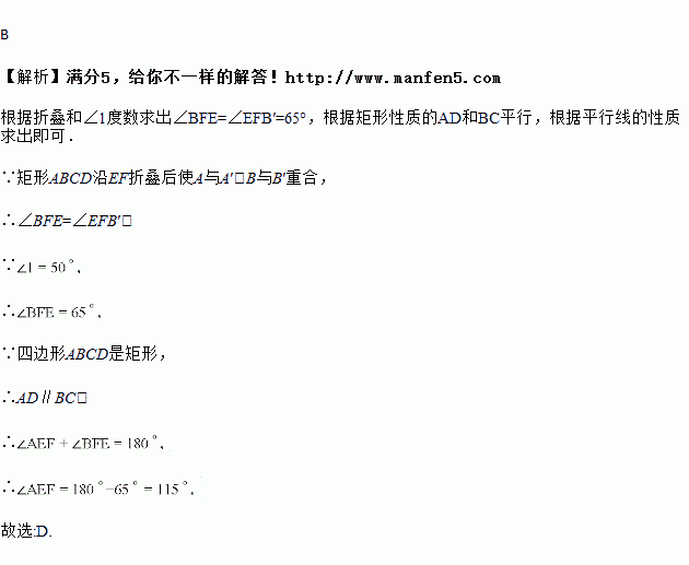如图,在平面内,把矩形ABCD沿EF对折,若∠1=50°,则∠AEF等于( )