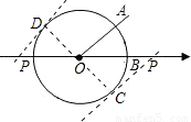 如图,已知⊙O是以数轴的原点O为圆心,半径为1的圆,∠AOB=45°,点P在数轴上运动,若过点P且与OA平行的直线与⊙O有公共点,设OP=x,则x的取值范围是( )A.O<x≤