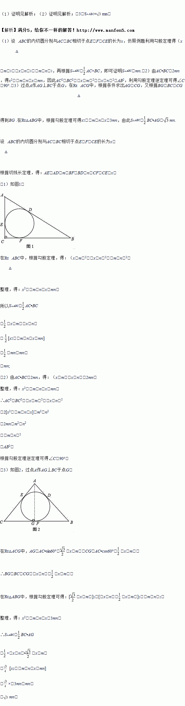已知:△ABC的内切圆与AB相切于点D,AD=m,BD=n.