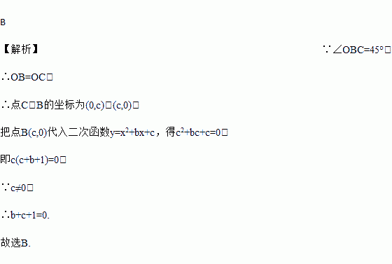 如图,抛物线y=x2+bx+c与x轴交于点A,B,与y轴交于点C,∠OBC=45°,则下列各式成立的是( )
