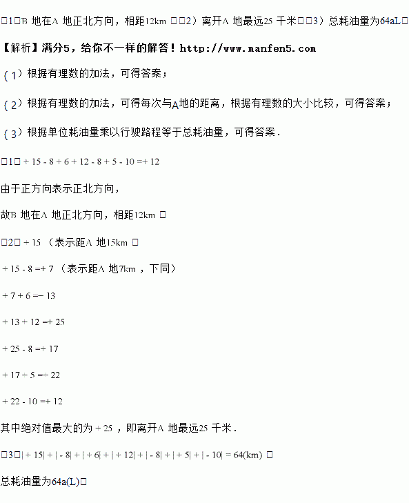 地,行驶记录如下(规定向北为正方向,单位:千米):![]()