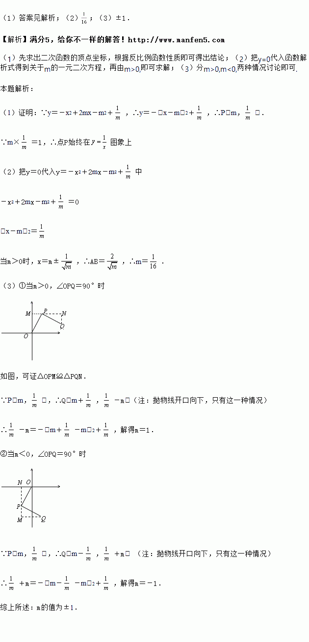 (3)该抛物线上是否存在一点Q,使得△OPQ是以点P为顶点的等腰直角三角形?若不存在,请说明理由;若存在,请求出m的值.