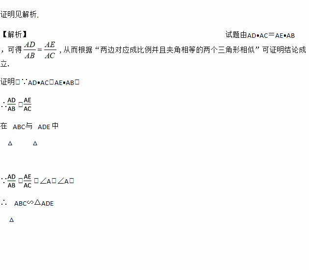 如图,已知AD•AC=AB•AE.求证:△ADE∽△ABC.