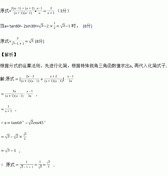 先化简,再求代数式的值.,其中a=tan60°﹣sin30°.
