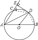 的中点,根据圆周角定理得到∠CAD=∠DAB,而∠DAB=∠ADO,则∠CAD=∠ADO,于是有AE∥OD,又DE⊥AC,即可得到结论;